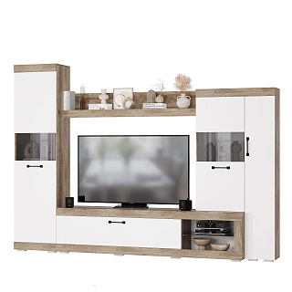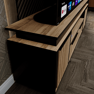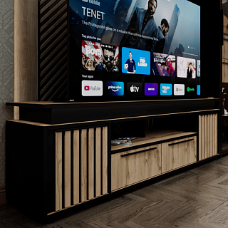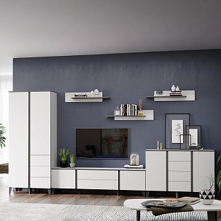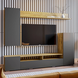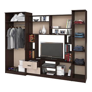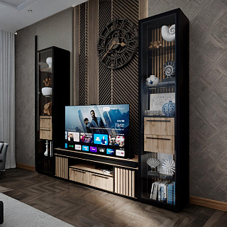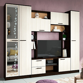 Практичная стенка ЕВРО-2 — это современное решение для гостиной, выполненное в популярном контрастном сочетании темного венге/лоредо. Эта мини-стенка под телевизор шириной 1,5 метра отличается увеличенной нишей под ТВ 1100 мм, что позволяет комфортно разместить экран с диагональю до 49 дюймов. Функционал модели включает распашной пенал, открытые полки для декора и нижнюю секцию с откидной створкой на надежном секретерном кронштейне. Благодаря возможности универсальной сборки, вы сами выбираете расположение модулей при монтаже, идеально подстраивая мебель под геометрию комнаты. Если вы хотите купить гостиную венге лоредо, которая объединяет компактность и вместительность, модель ЕВРО-2 из качественного ЛДСП станет долговечным выбором для вашего дома.
