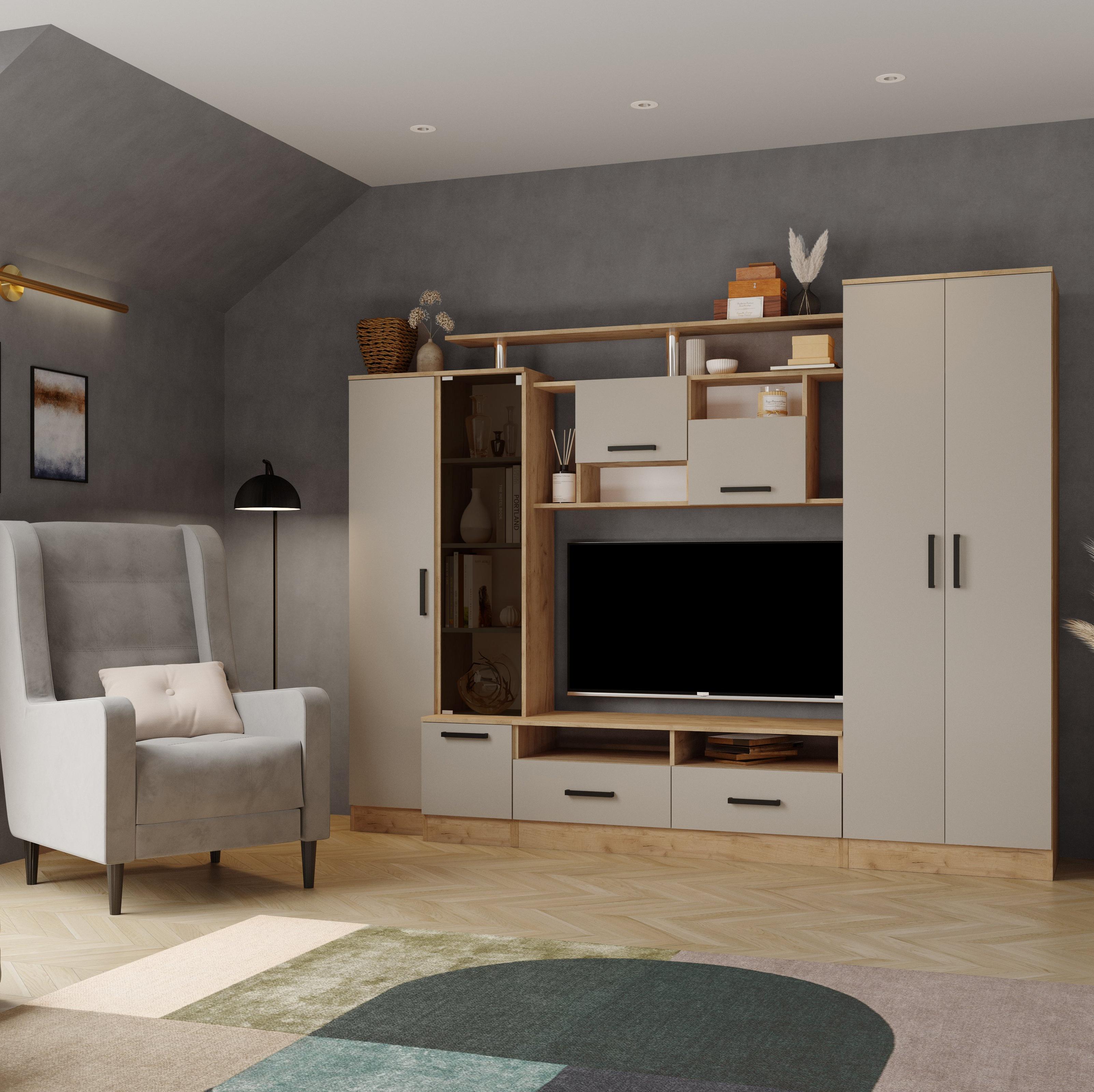 Стенка ОСКАР-5 // дуб крафт золотой, кашемир