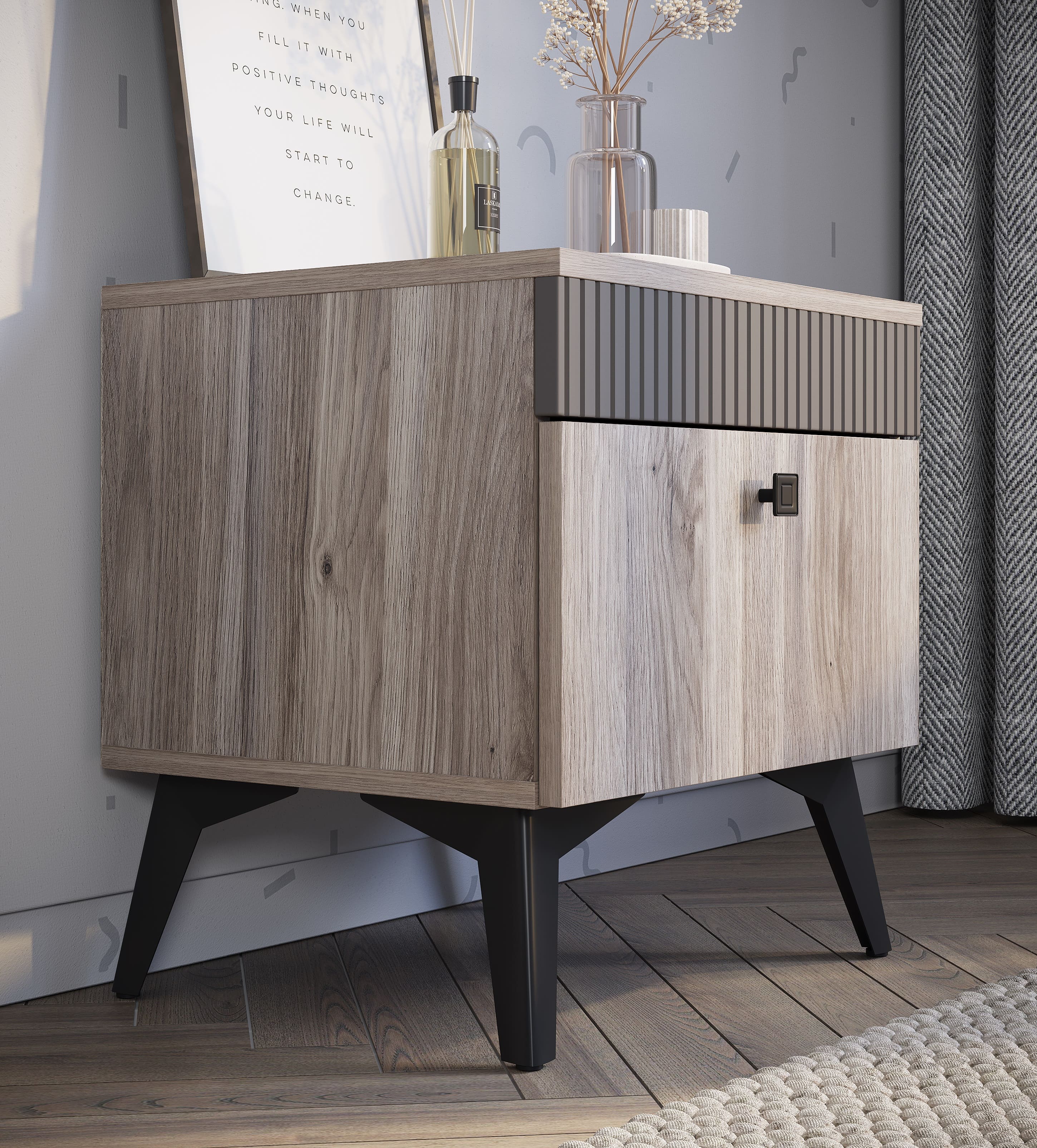 • Тумба прикроватная КАССАНДРА ТБ-11 // Дуб Смоки/MF14 - Ш 452 х В 470 х Г 380 мм 2 шт.