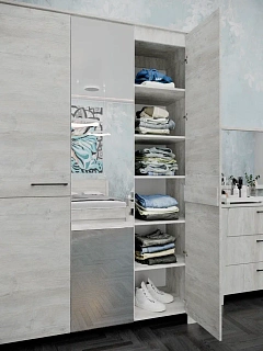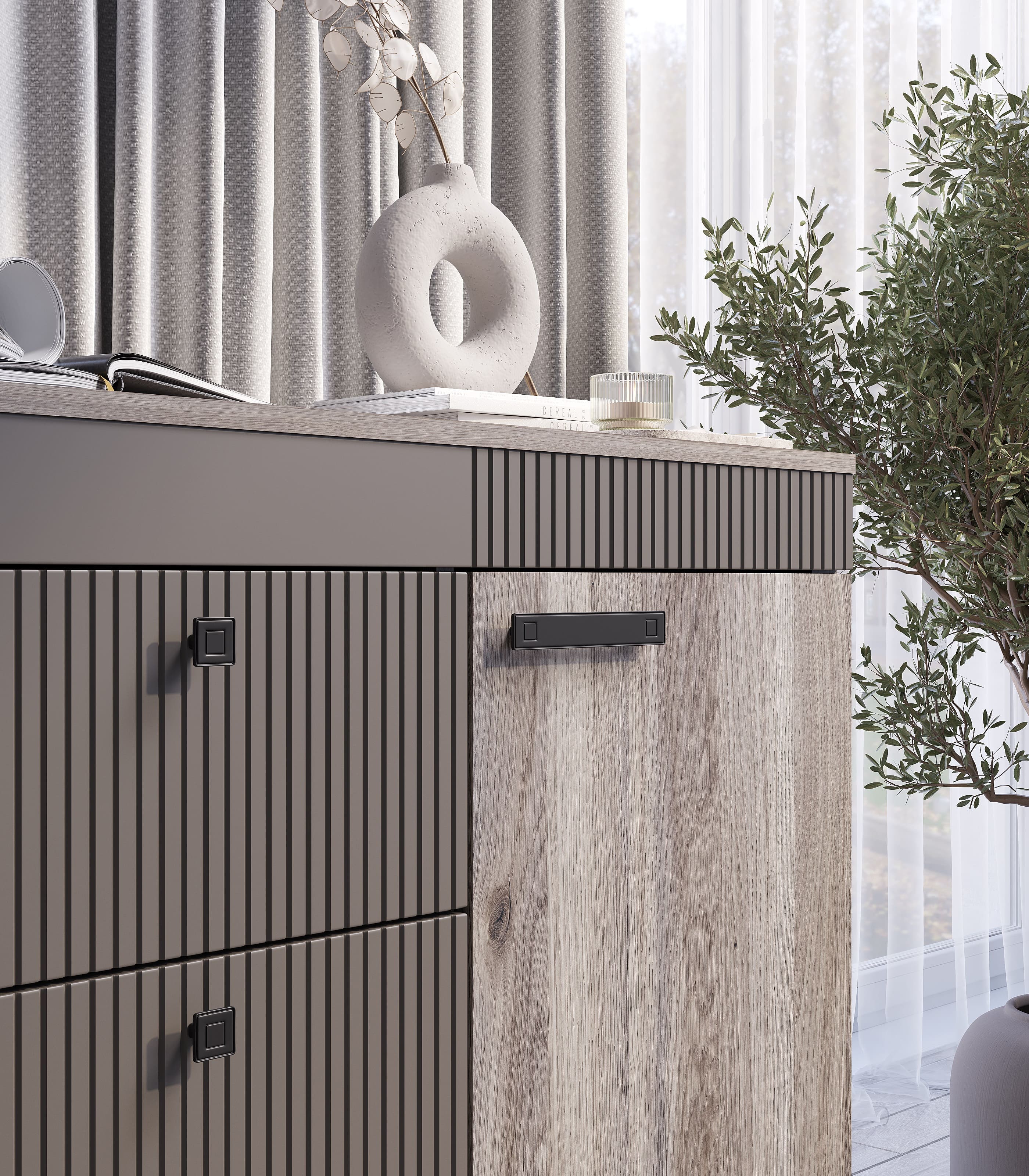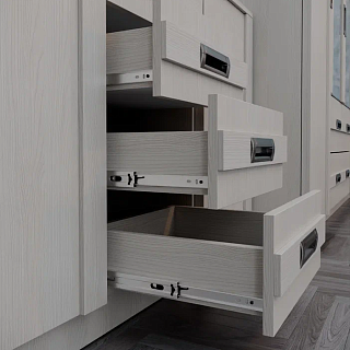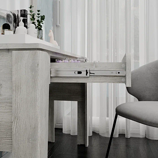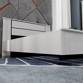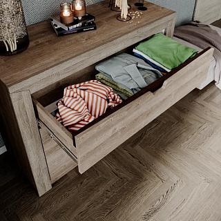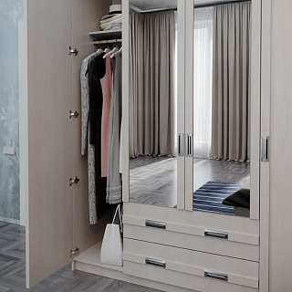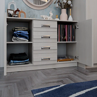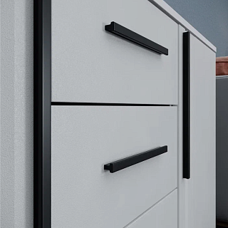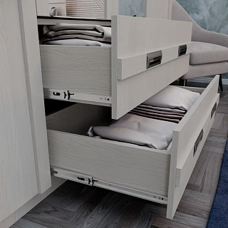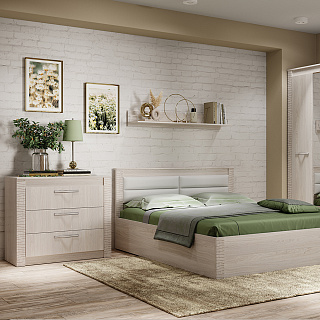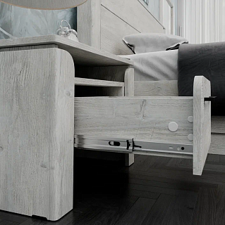 Элегантная модульная спальня КАССАНДРА (Дуб Смоки / MF14) — это идеальное воплощение современной классики и актуальных интерьерных трендов, созданное для организации безупречного пространства для. Сдержанная и благородная коллекция выполнена в популярных пудрово-пыльных оттенках «дуб смоки», которые наполняют интерьер мягкостью, придавая спальне неповторимую атмосферу абсолютной гармонии и уюта. Продуманный модульный ряд позволяет собрать индивидуальную композицию под любые габариты комнаты: в серию входят комфортная двуспальная кровать с изящными вставками из МДФ, вместительный трехстворчатый шкаф с грамотным зонированием гардероба, функциональный широкий комод и эргономичные прикроватные тумбы. Контрастным акцентом на фасадах выступают стильные черные комбинированные ручки из АБС-пластика. Особая гордость коллекции — надежные металлические опоры высотой 150 мм, которые не только придают массивным модулям визуальную легкость, но и обеспечивают беспрепятственный доступ для влажной уборки и работы робота-пылесоса. Если вы планируете купить стильную модульную спальню в пудровых тонах на высоких ножках, коллекция КАССАНДРА станет абсолютно лучшим выбором благодаря своей эргономике, надежной фурнитуре с шариковыми направляющими и безупречному качеству исполнения каждой детали.
