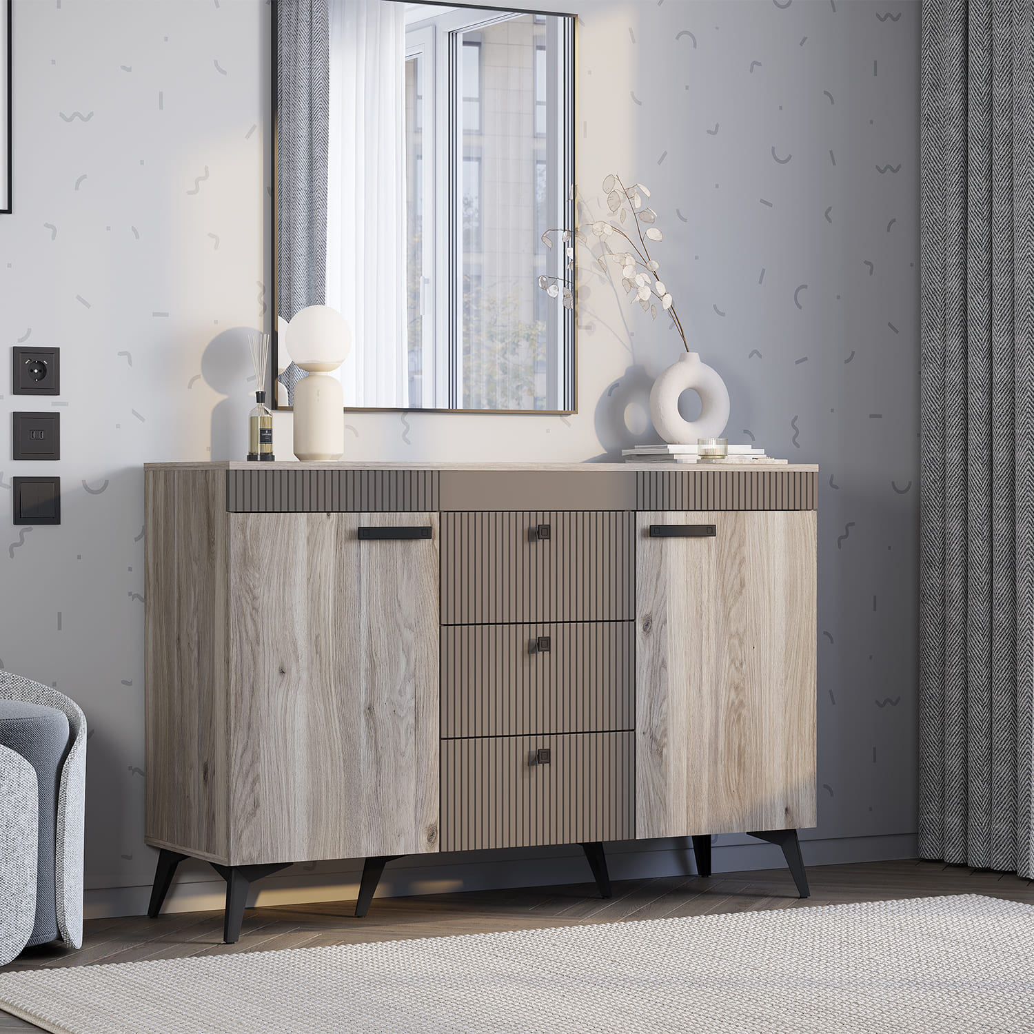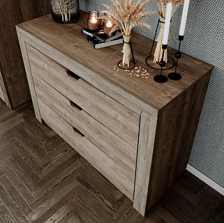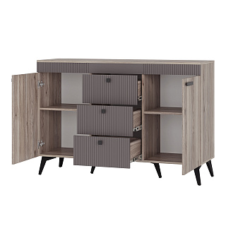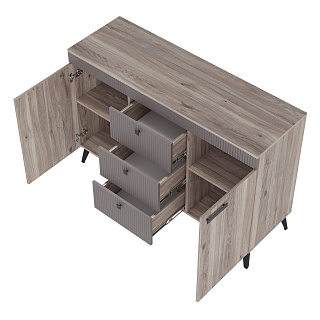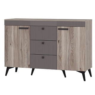 • Комод КАССАНДРА КМ-12 // Дуб Смоки/MF14 - Ш 1352 х В 920 х Г 442 мм