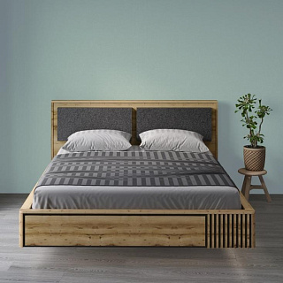 • Кровать КАССАНДРА КР-19 // Дуб Смоки/MF14 - Ш 1634 х В 994 х Г 2130 мм