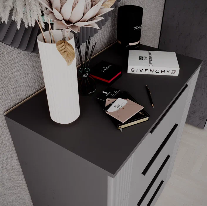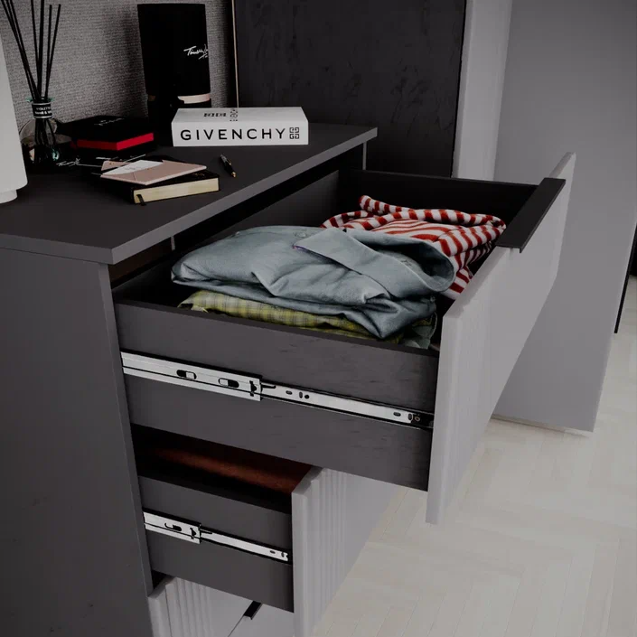 Комод с 4 ящиками ВИТА // темно-серый лофт, силк маус