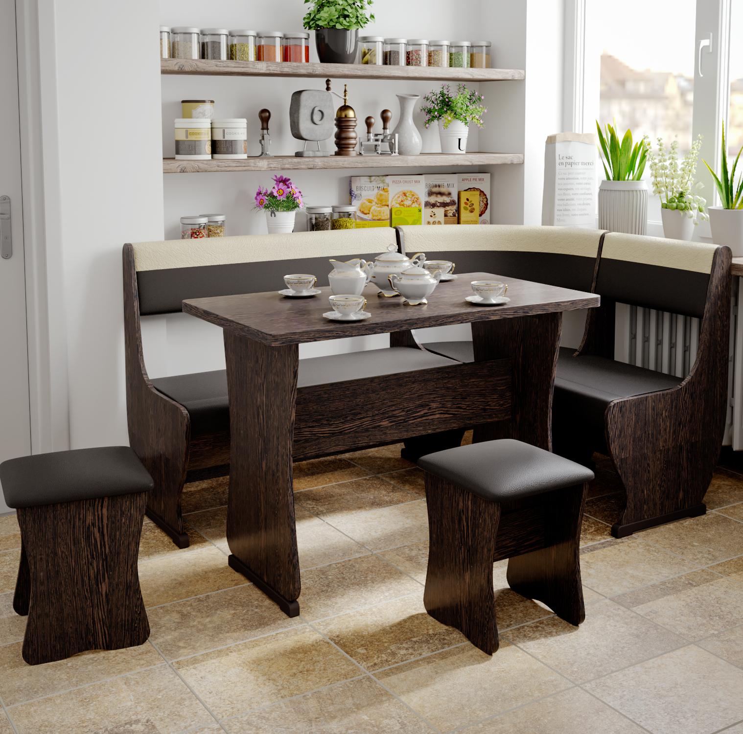 Кухонный уголок УЮТ-1 // венге, искусственная кожа шоколад-бежевый, Универ.