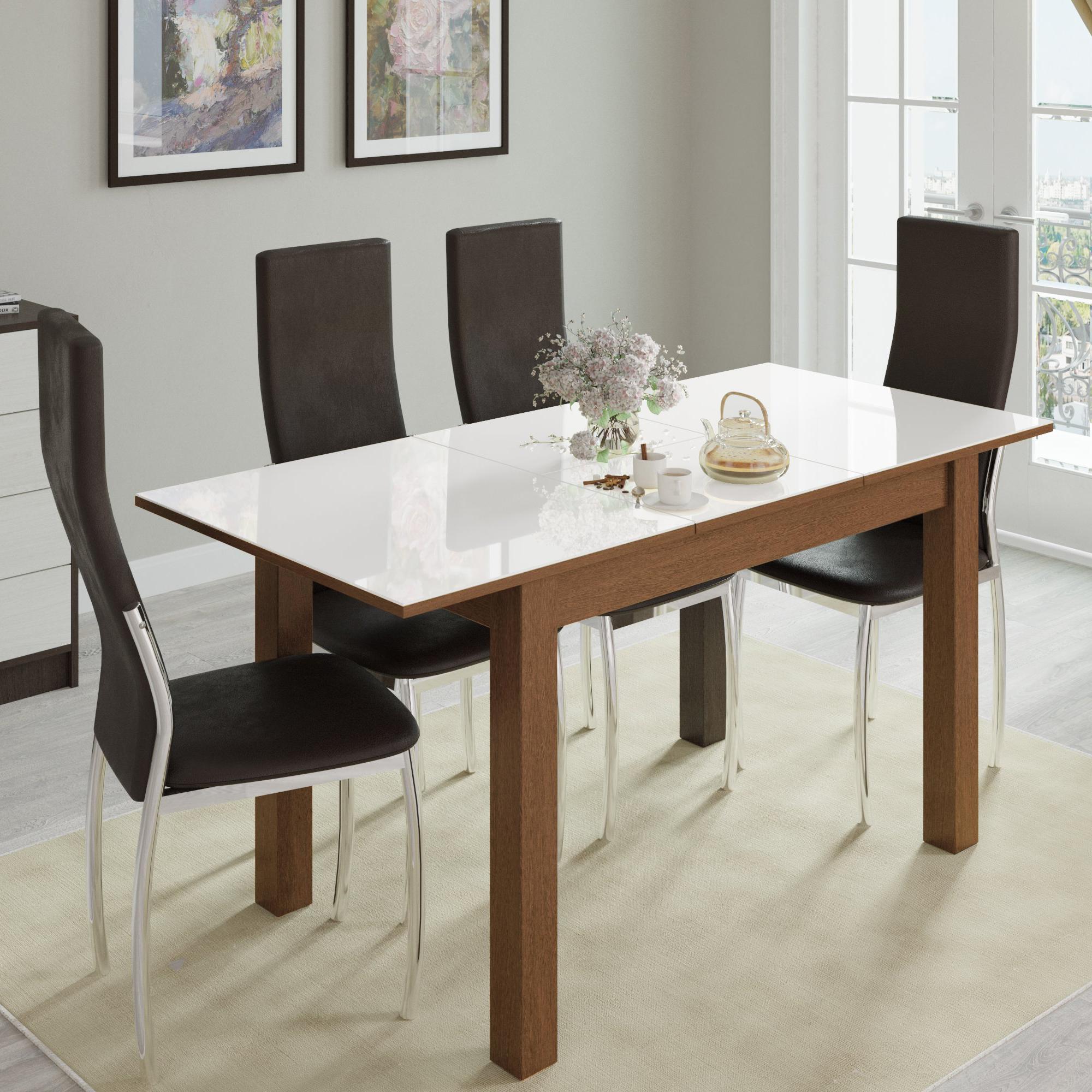 Стол обеденный БРУНО раскладной 1000х600 // орех шоколадный, орех шоколадный, лакобель белый