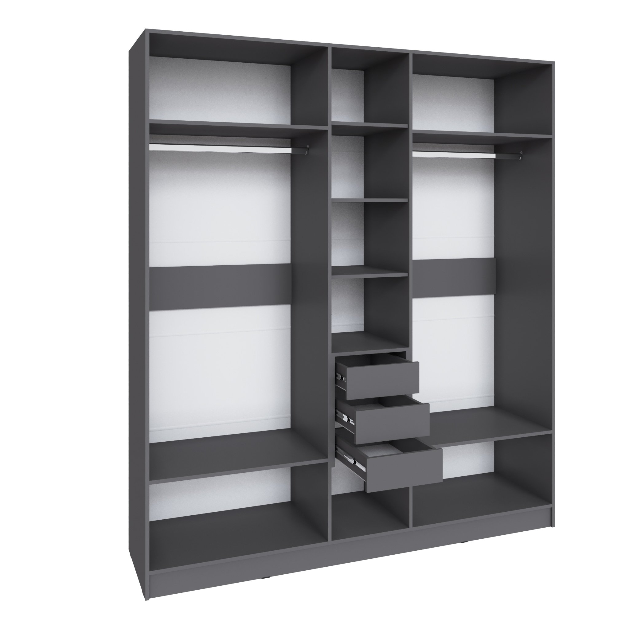 Шкаф пятистворчатый МАДРИД (2,0) с 3 ящиками внутри с зеркалом // графит серый