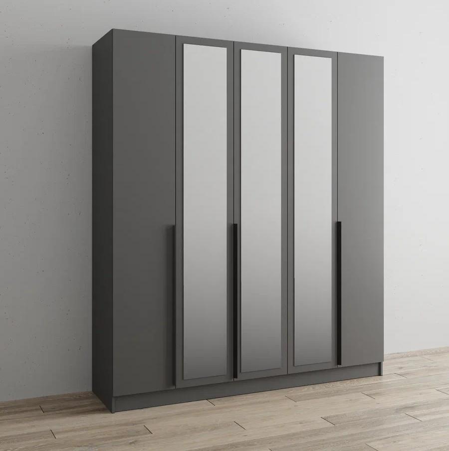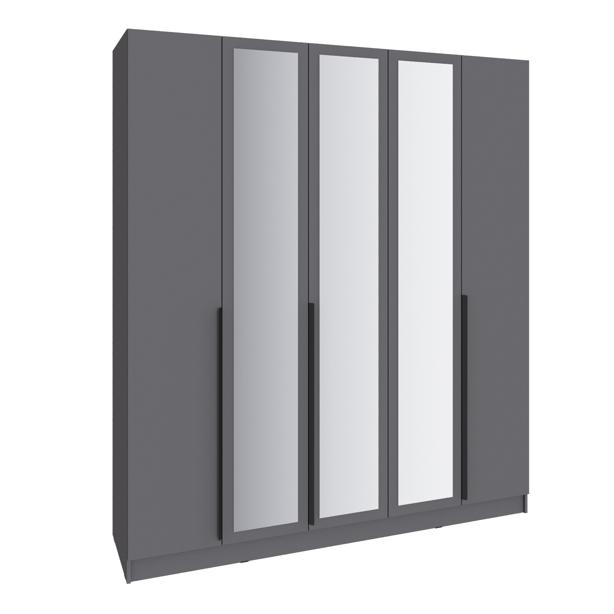 Шкаф пятистворчатый МАДРИД (2,0) с зеркалом // графит серый