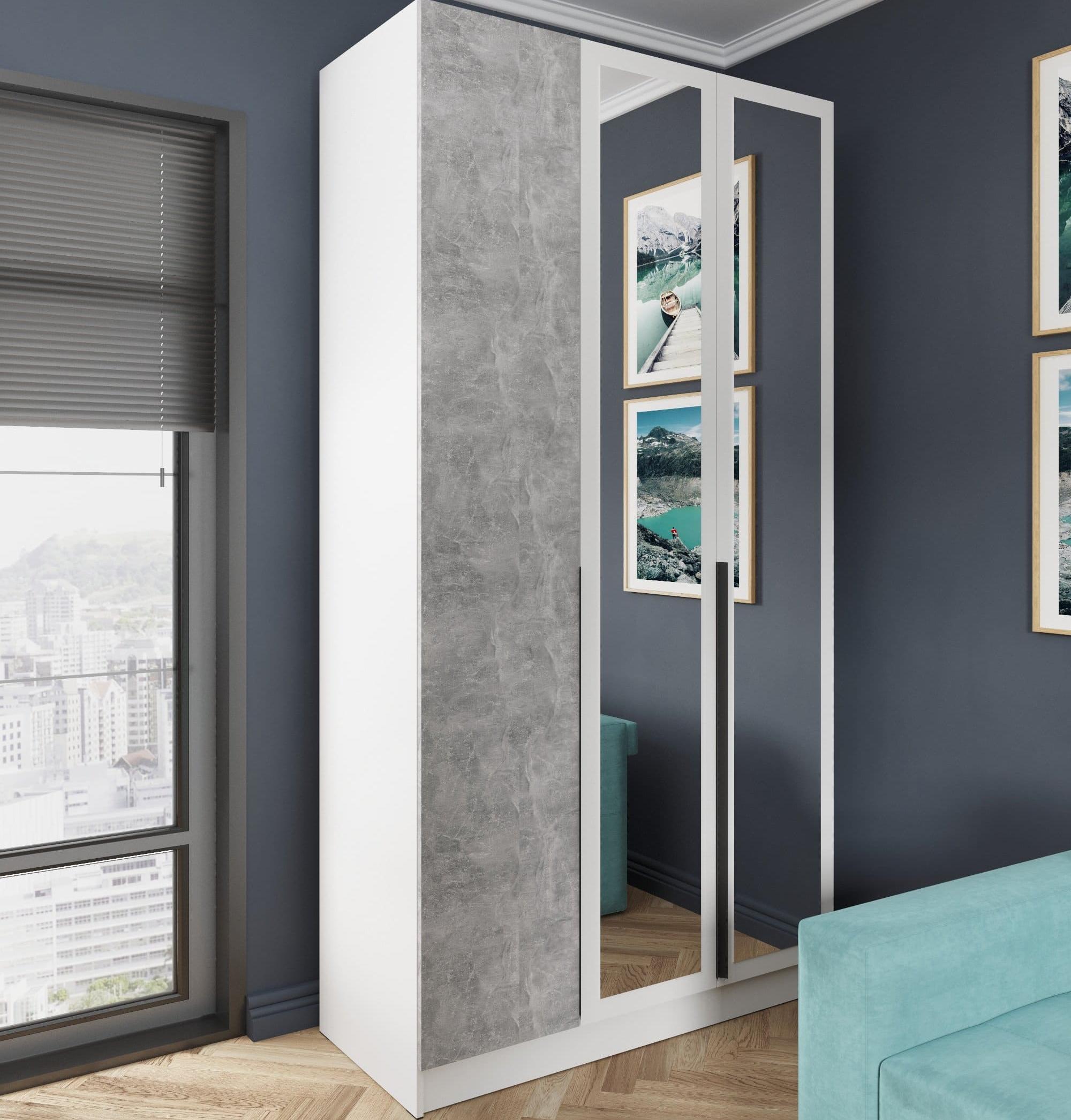 Шкаф трехстворчатый МАДРИД (1,2) с 3 ящиками внутри с зеркалом // белый/ателье светлое