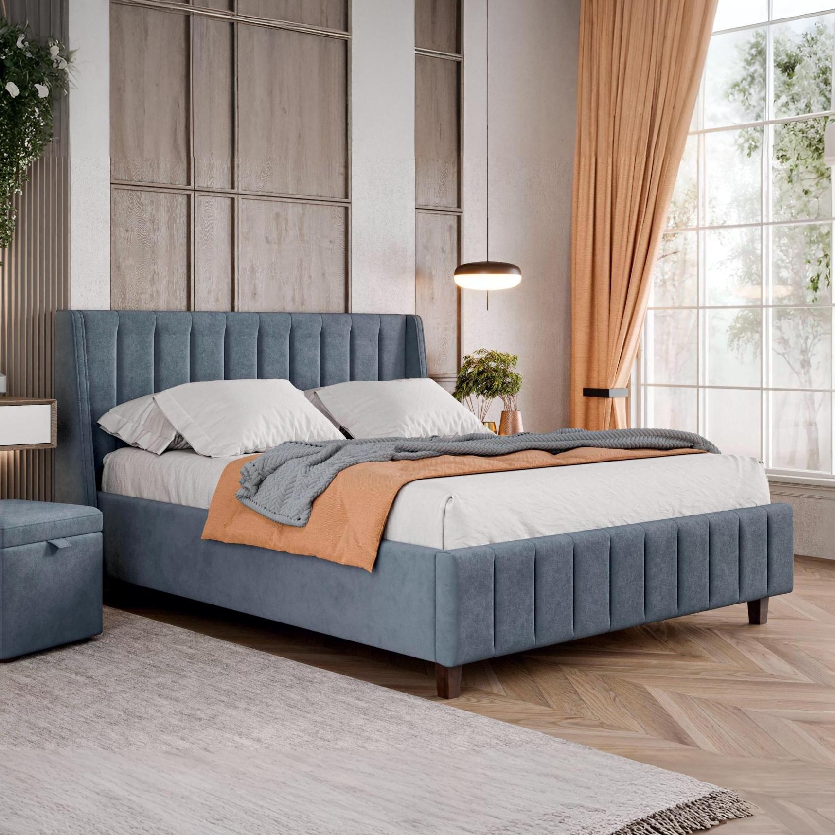 Кровать МИЛАНА 1600 // севен 017, велюр темно-серый