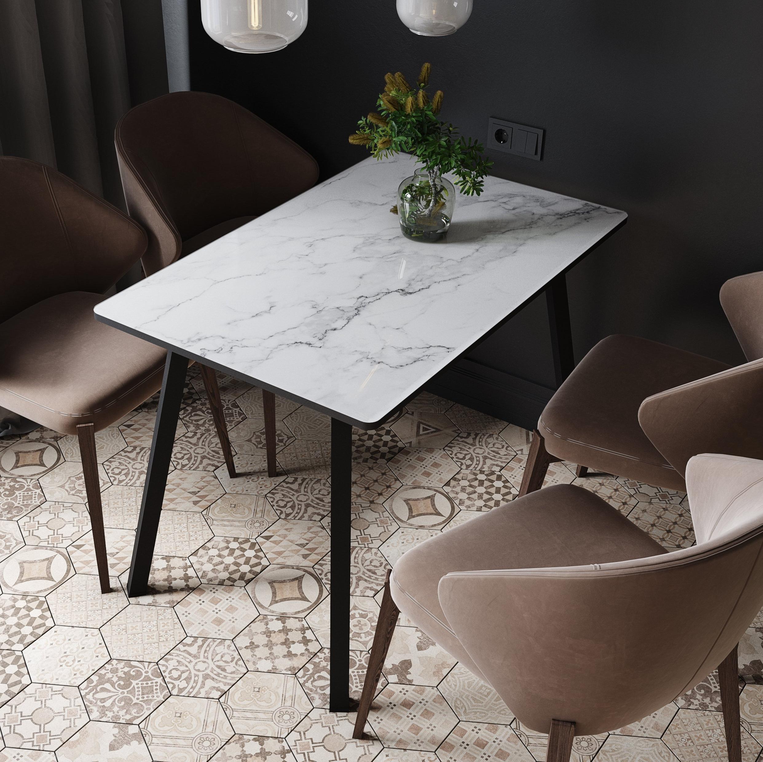Стол обеденный ЛОФТ 1200х800 // мрамор белый, вайт стоун