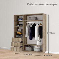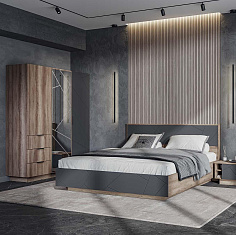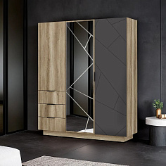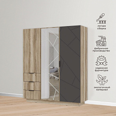 Шкаф трехстворчатый с ящиками ДАЛЛАС ШК-01 // дуб каньон,софт графит