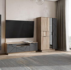 Пенал со стеклом ДАЛЛАС ПН-02 // дуб каньон,софт графит